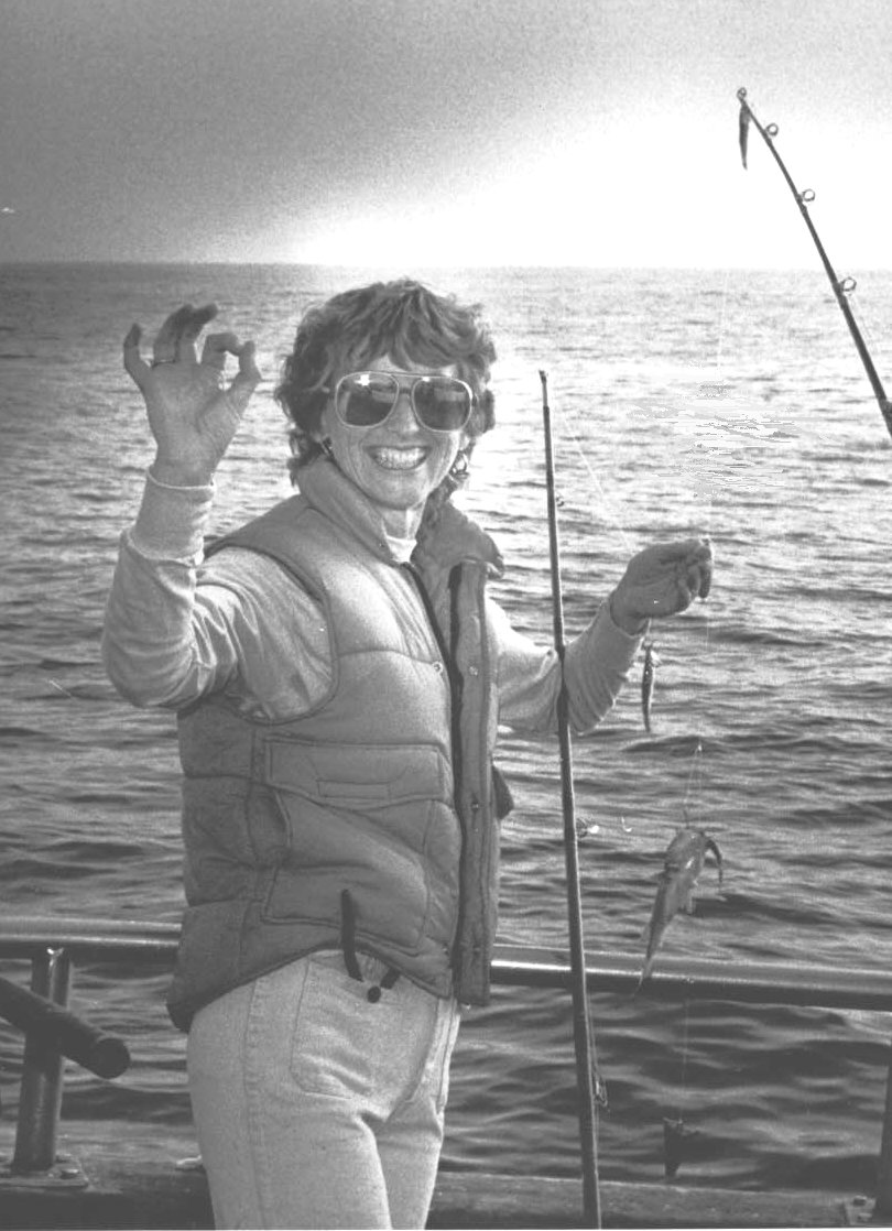 She had a good spot on the fishing pier and was starting early; rigging her pole with an anchovy as I watched. The weighted line swung far out over the smooth water of Redondo Bay and ran until she flipped the bail on the reel. Only then did she turn and take a seat on the little wooden keg. An open tackle box and a bucket of live anchovies were beside her, and several gunny sacks lay nearby. A heavy, sleeveless jacket, spotted and stained, covered her small body. Wearing baggy men's pants, pulled tight with a large belt, she had stuffed them into red rubber boots. She looked buried in the tattered knit cap pulled down to ward off the morning chill. She might have weighed ninety pounds and she might have been close to seventy years old. I was struck by the most beautiful smile I had ever seen!